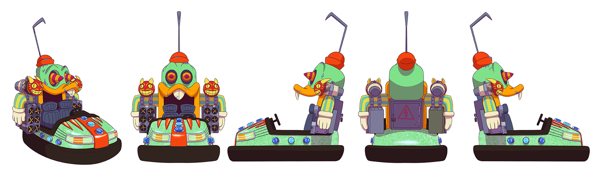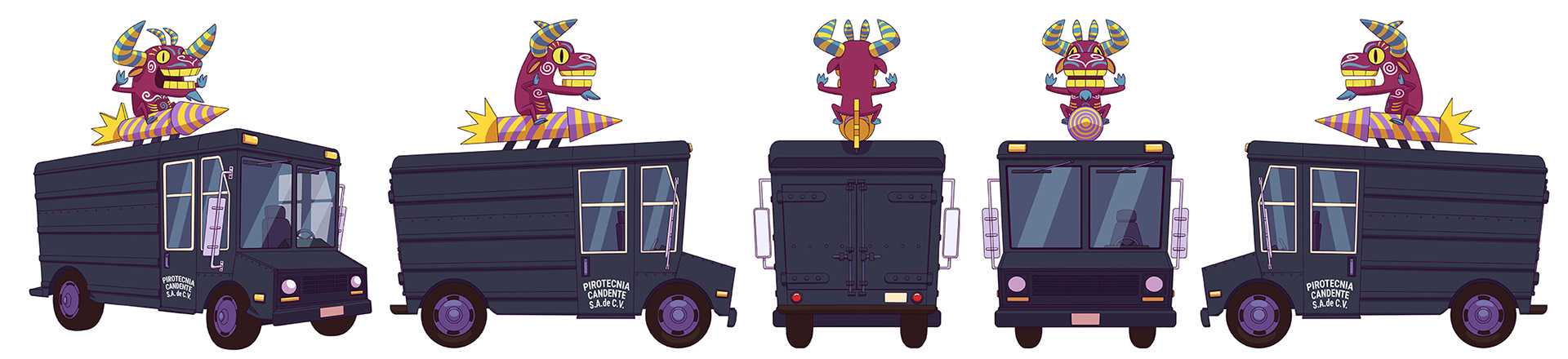 Character and vehicle designs made under the supervision of Marvick Nuñez and Gabriel Vera. For the animated feature La Liga de los 5. La Liga de los 5. D. R (C) Ánima Estudios S.A.P.I. de C.V México 2020. Todos los derechos reservados